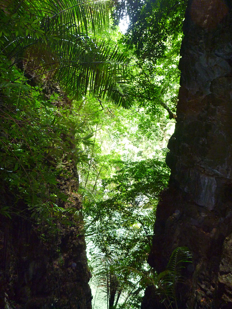 Wir sind entlang von einem Fluss direkt in die Schlucht gegangen und waren von beiden Seiten von sehr hohen Steinwänden umgeben, was ursprünglich mal ein Korallenriff war. Es war an diesem Tag mal wieder sehr warm und wir wollten eigentlich zuerst in dem Fluss baden bis wir ein Schild gesehen haben und es uns dann nochmal anders überlegt haben. In diesem Fluss waren nämlich Krokodile unterwegs, die wir später dann auch zu gesicht bekommen haben. Es waren allerdings nicht besonders große Krokodile aber selbst von denen gebissen zu werden möchte man lieber auch nicht.